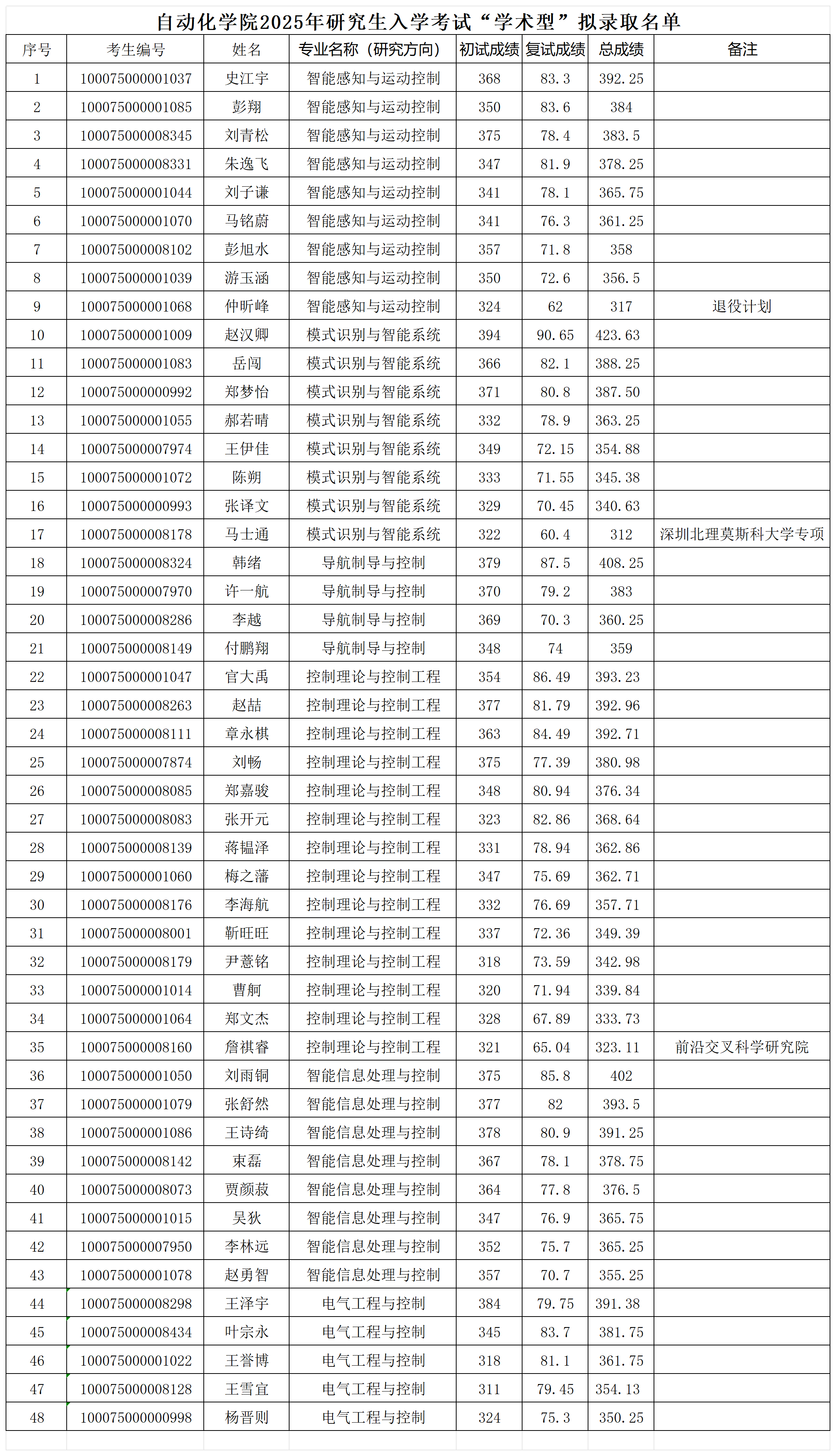 bat365中文官方网站2025年研究生入学考试“学术型”拟录取名单