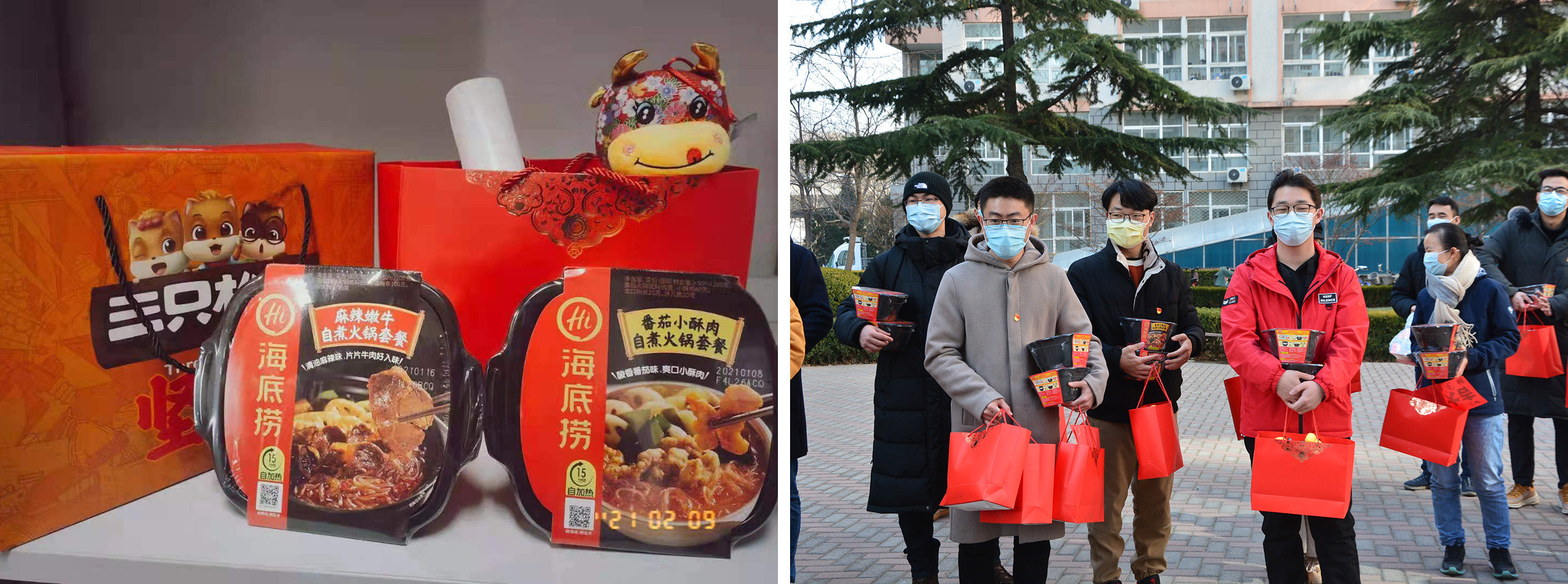 各位老师为留校学生送上“金牛贺年”大礼包,真可谓“自动化院迎新年,师生连心笑开颜。寒假不寒心中暖,谆谆教诲记心间”。此外,学院也为留校的青年单身男教师们送去了慰问品以及节日的问候。