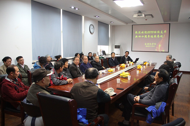 2015年11月8日上午,北京理工大学22721班1975届校友毕业40周年返校活动在中关村校区六号楼三层会议室举行,近三十位耄耋校友重聚北理工。bat365中文官方网站院长王军政、党委书记金军、老教师曹泛、郑万熙、李妙成、徐家培,杨浩等出席了此次活动。活动由副院长刘昕戈主持。