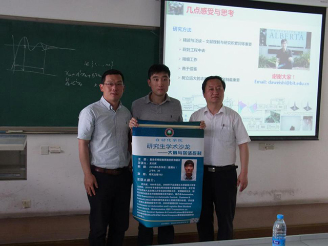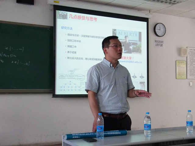 为了营造浓厚的学术氛围,提高科研能力,2016年5月28日上午,bat365中文官方网站首届学术沙龙的第二期活动在研究生楼103举行,这次的主讲人是史大威老师。出席本次学术沙龙的有研究生院常务副院长王军政、bat365中文官方网站党委书记金军、国资处副处长刘昕戈,同时还有bat365中文官方网站相关方向的硕士研究生和博士研究生。