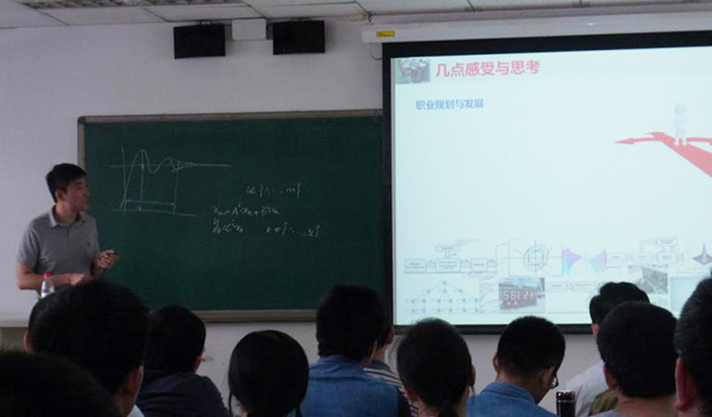 关于博士生涯,史老师从大三学年结束获得本直博资格时开始讲起,到跟着导师王军政教授做科研,再到公派至加拿大阿尔伯塔大学攻读博士研究生,仔细分享了自己求学和科研之路上的“酸甜苦辣”。诙谐、生动的讲述吸引了全场的目光,在场的师生不时发出掌声。他指出良好的科研习惯十分重要,科研工作要做得精细,并建议同学们及早规划人生,树立远大的志向。