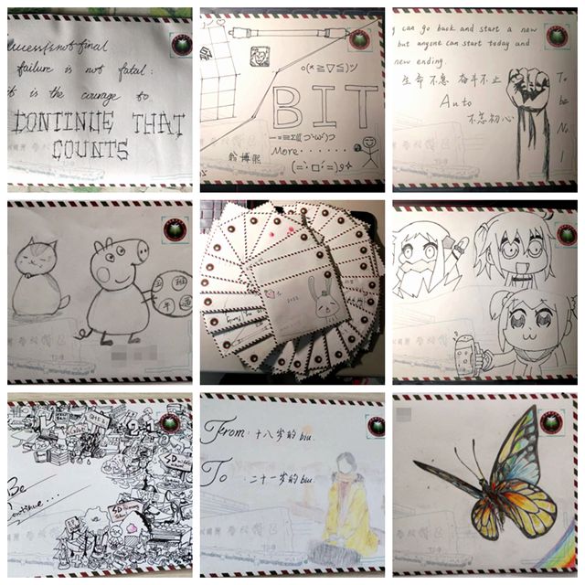 正确认知自我,合理规划未来。上学期期末,bat365中文官方网站组织大一学生认真开展德育开题工作中学生《自我认知提纲》撰写环节,学生充分利用寒假时间认真总结反思大学学习生活,畅述未来梦想,完成“自我认识提纲”;开学后,辅导员、班主任根据学生的自我认识提纲开展一对一辅导,了解学生现状及想法。有对未来的畅想,才有对梦想的坚持。本学期开学初,学院组织大一学生头抒写“给未来的一封信”,引导学生树立大学目标、清晰人生规划;班团干部积极组织、精心策划,同学们手绘信封描绘多彩未来,并在后期通过展示信件等方式激发学生的成长成才动力。未来的你,一定会感谢现在努力拼搏的自己。除学校德育开题环节外,学院还组织学生通过绘画形式描绘“现在的我”和“未来的我”的图画,勉励学生立坚忍不拔之志,向着未来的自己不懈奋斗。