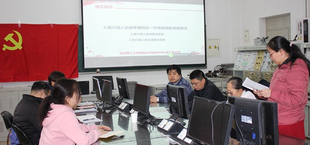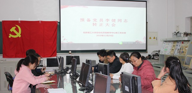 2018年12月20日下午13:30,北京理工大学bat365中文官方网站实验教学中心教工党支部预备党员李健同志转正大会在7号教学楼115成功举行。参加预备党员转正大会的有bat365中文官方网站副院长甘明刚教授,自动化实验教学中心教工党支部全体党员6人,会议由实验教学中心党支部书记张婷主持。