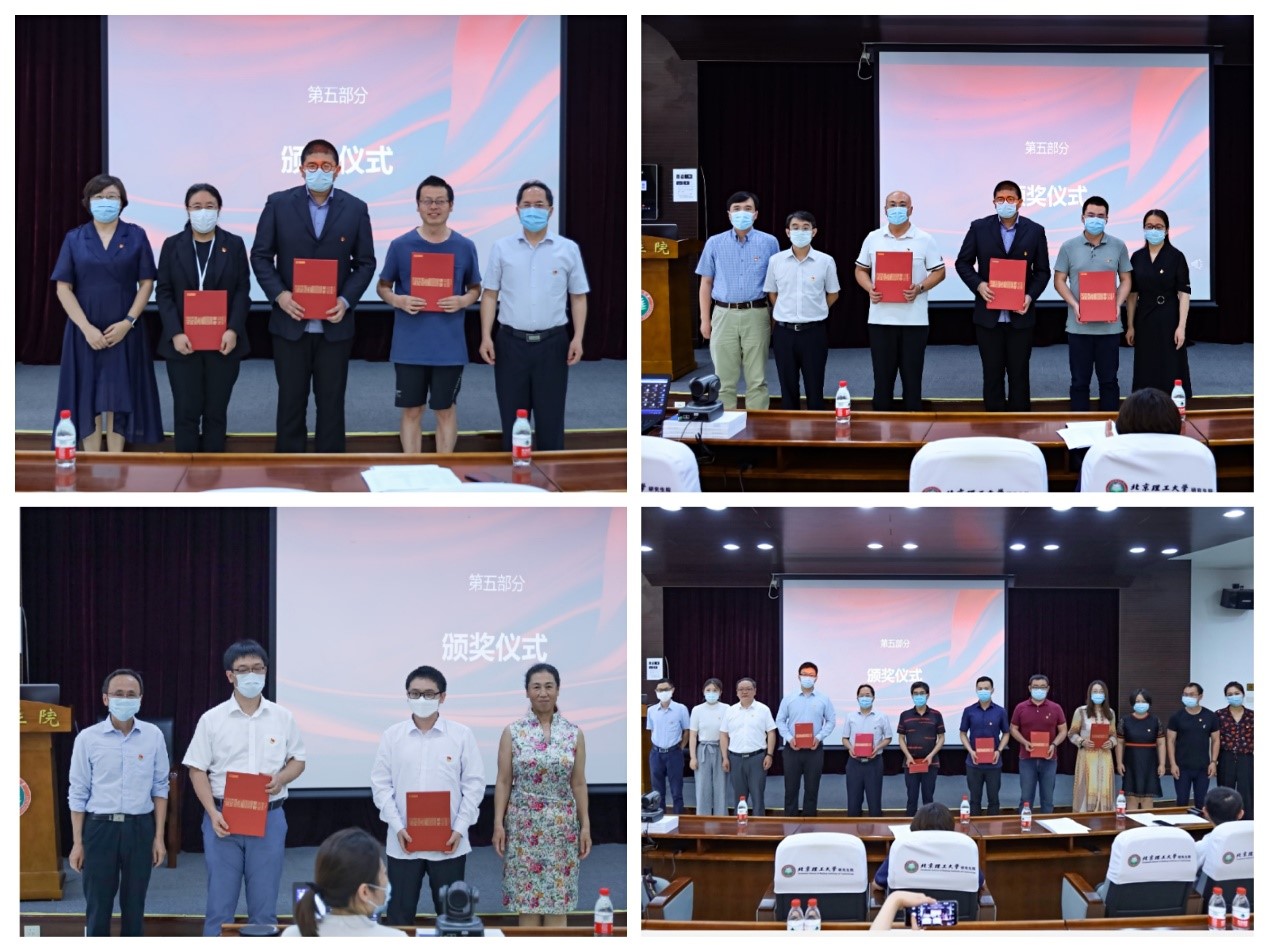 院长、党委副书记夏元清宣读了《关于表彰先进党支部、优秀共产党员、优秀党支部书记和抗疫先锋的决定》。与会学院领导为导航制导与控制研究所教工党支部等5个先进党支部、黄腾等8名优秀党支部书记、盖希娟等20名优秀共产党员、马宏宾等5名抗疫先锋中参会的受表彰集体和个人颁发了证书。